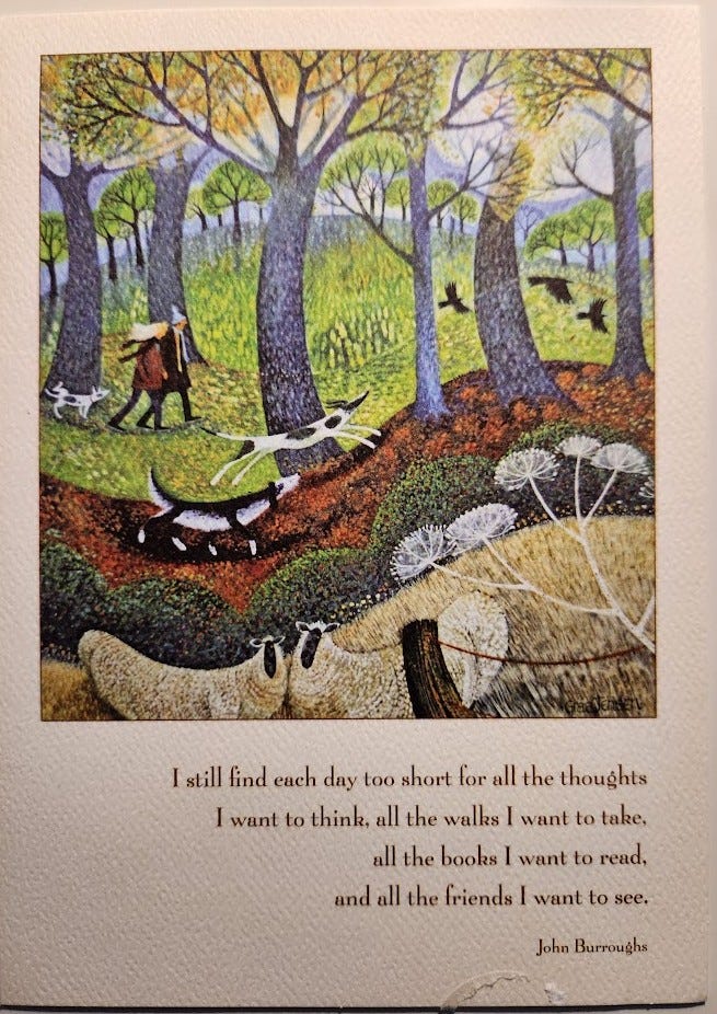 Slipping on the ice while dog walking and breaking my arm this winter has given me pause…same thought of “what did I do to cause this??” But apppreciated the slow days, not cooking, not shoveling, and a lot of reading…a luxury.